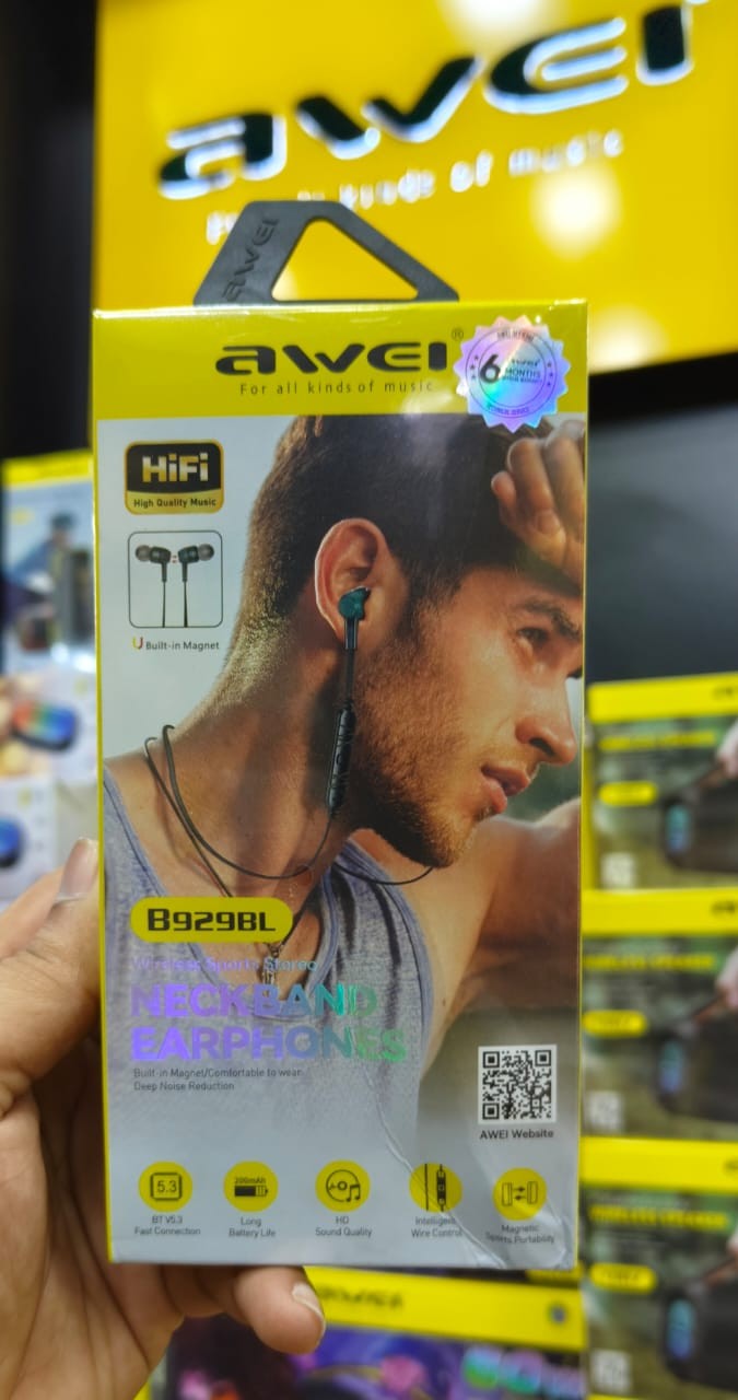 Awei B929BL Sports Earphone Neckband has Bluetooth 4.2 wireless connection up to 10 meters. In-ear wireless design, good for enjoying music while doing sports. Large battery capacity, low power consumption, long life. Noise Reduction with CVC 6.0. The awei B929BL features an in-line control for easy access to music playback, volume adjustment, and calls, along with an IPX4 rating for sweat and splash resistance, making it perfect for workouts or outdoor use. Awei B929BL price in Bangladesh is 650 Tk. To get other brand neckbands, visit our website budget-friendly price.