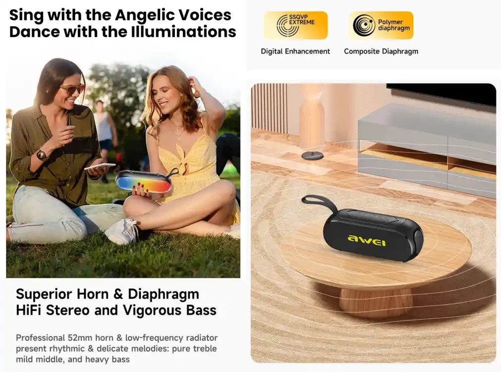 Buy Awei KA2 Colorful Light Portable Speaker online in Bangladesh from Cellsii. The Awei KA2 10W Bluetooth Speaker is a sleek and compact audio device that delivers powerful sound quality and convenient wireless connectivity. With its 10W output, this speaker is capable of producing rich and immersive audio, making it perfect for both indoor and outdoor use.