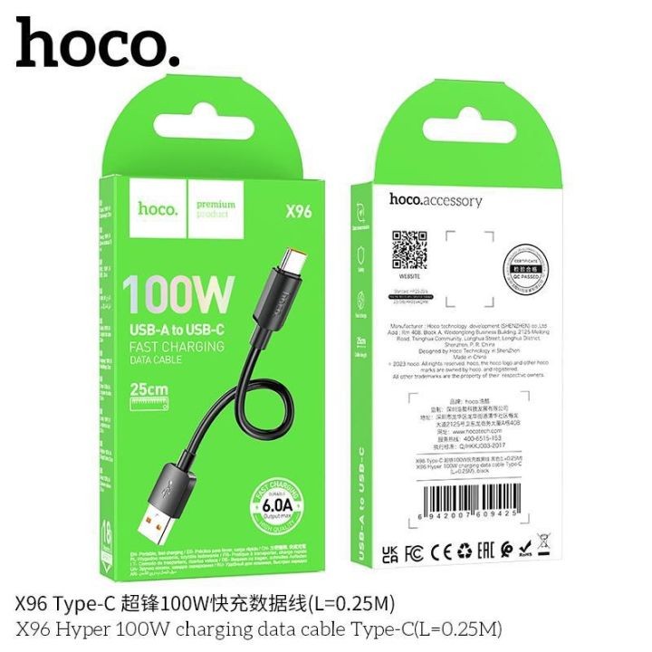 Hoco X96 100W 6A (A-to-C) Short Charging Data Cable – 25cm