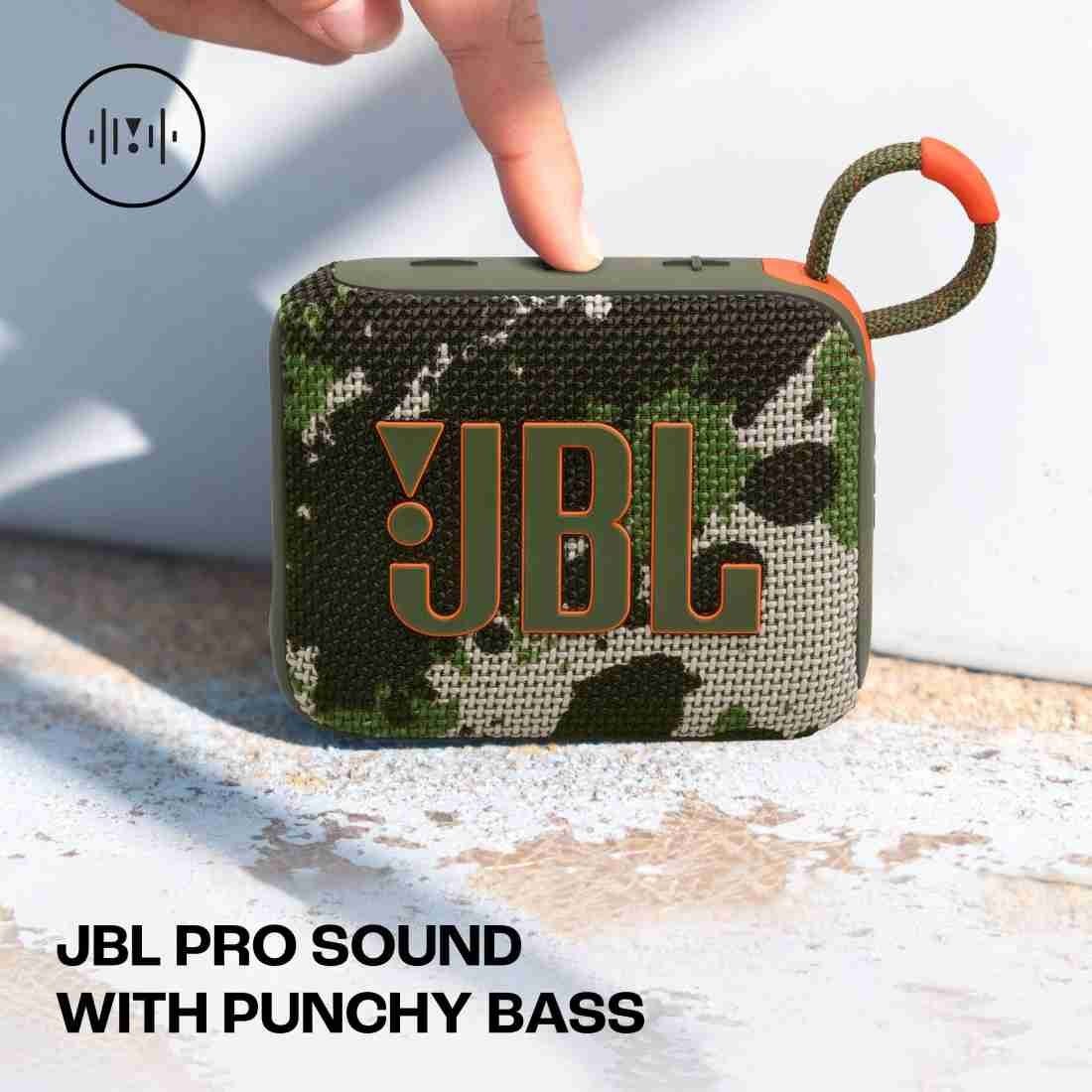 Move to greater music sessions on the go with the fantastic JBL Go 4, which comes with greater sound quality and improved design features. offers impressive musical performance, delivering rich JBL Pro Sound with deep bass. Despite its compact size, this speaker packs a punch that will amaze your friends. With up to 7 hours of playtime on a single charge, plus an additional 2 hours with Playtime Boost, you can enjoy uninterrupted music wherever you go. Keeps you worry-free during your adventure times as it comes with IP67 waterproof and dustproof design ensures durability in various environments. There’s also stable and strong Bluetooth 5.3 connectivity, that ensures seamless wireless streaming. Made with eco-friendly materials and weighing only 190 grams, it's both lightweight and environmentally conscious. Enhance your listening experience with customizable sound options through the JBL Portable app.