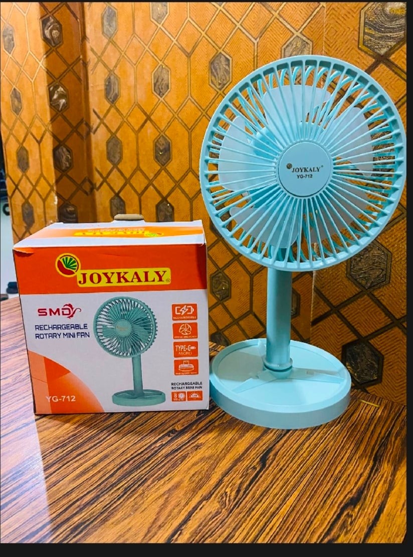 The JOYKALY YG-712 Rechargeable Table Fan is designed to provide strong and refreshing airflow wherever you need it. Whether at home, in the office, or on the go, this compact and portable fan ensures comfort with its high-speed motor and long-lasting 4000mAh lithium battery. Perfect for indoor and outdoor use, it combines efficiency, convenience, and modern design to keep you cool in any situation.