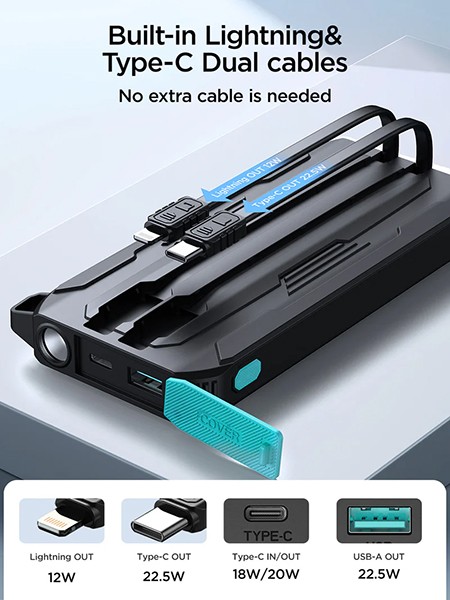 5. Dual built-in charging cables, compatible with various iP/Android devices