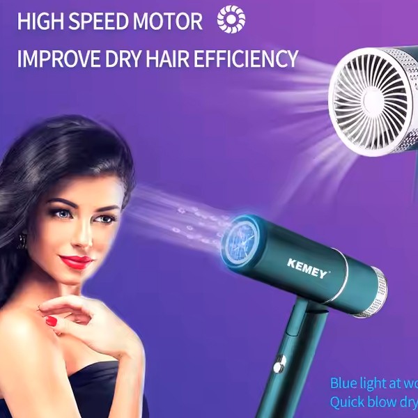 KEMEY KM-9825 1000w/50hz AC220-240v Portable and foldable Green Hair Dryer Professional Salon