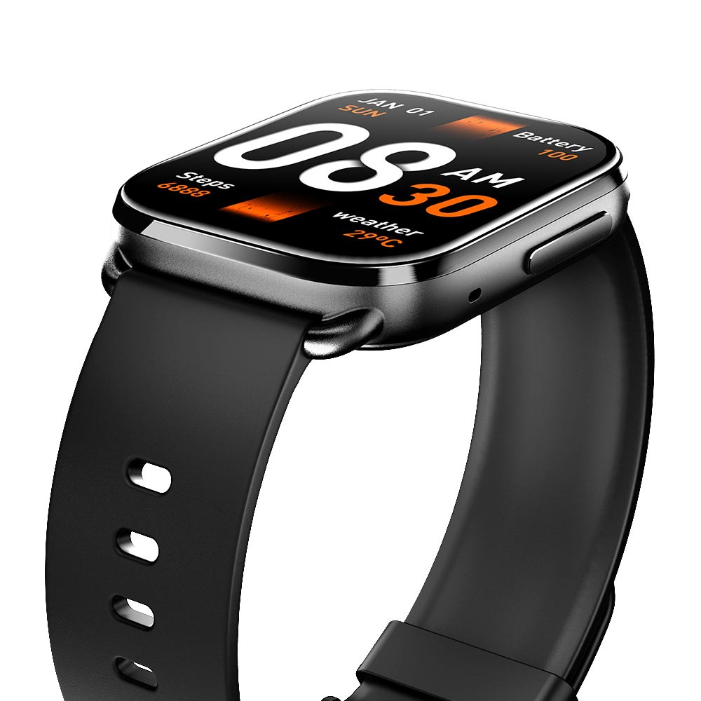 Get your smarter lifestyle richer with the QCY Watch GS smartwatch, crafted with durable zinc alloy for enduring quality while packing most useful health tracking features. Stay secured even in slight raindrops and exercise sweats as you get IPX8 water resistance. Sleek black finish exudes timeless elegance, complemented by a spacious 2.02-inch display offering vivid smart features. With a slim bezel design, notifications and watch faces are showcased flawlessly, supported by a remarkable 78% screen-to-body ratio. Experience fluid interaction with its 60Hz refresh rate interface. Choose from over 100 dynamic watch faces for a personalized touch. Stay connected with Bluetooth calling and monitor your health with 24-hour heart rate and SpO2 tracking, including women's cycle activity. Lightweight and water-resistant, it's your perfect companion for all-day wear, even during workouts.