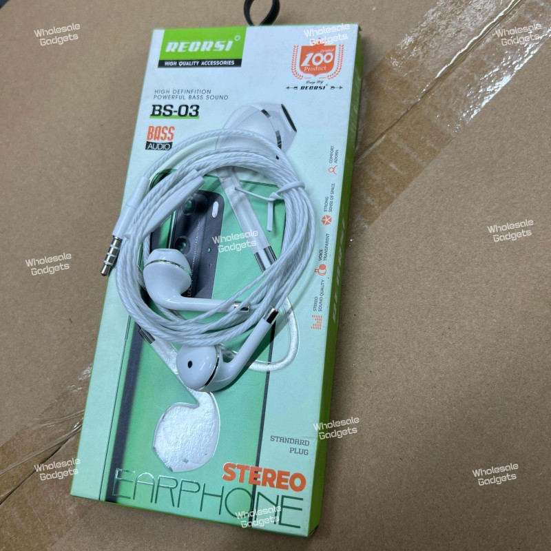 RECRSI BS-03 are wired stereo earphones with powerful bass sound.