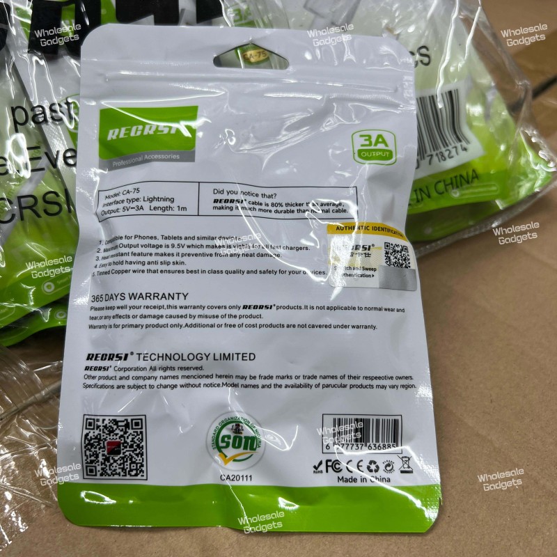 Recrsi CA-75 Fast Charging & Data Transfer Cable 1m micro, type-c, iphone.