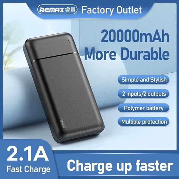 The Remax RPP-166 20000mAh Lango Series Power Bank is a reliable and stylish portable charging solution that offers a high-capacity Li-polymer battery. With a battery capacity of 20000mAh and a rated capacity of 1200mAh at 5V-2.1A, this power bank provides ample power to keep your devices charged on the go. The power bank features multiple input options, including Micro and Type C ports, allowing you to conveniently recharge the power bank using different cables. The input is DC5V=2.1A, ensuring a fast and efficient charging process. Equipped with two USB output ports, each delivering DC5V=2.1A, the Remax RPP-166 enables you to charge multiple devices simultaneously. Whether it's smartphones, tablets, or other USB-powered devices, this power bank provides a stable output to ensure efficient and safe charging. The LED light indicators on the power bank keep you informed about the remaining power level, allowing you to plan your charging needs accordingly. The simple and stylish texture design adds an aesthetic touch to the power bank, making it an attractive accessory to carry with you. Safety is a top priority with the Remax RPP-166. The power bank utilizes high-quality battery cells that are known for their reliability and durability. The stable output and built-in safety features protect your devices from overcharging, overheating, and short circuits, providing a safe and reliable charging experience. Whether you are traveling, commuting, or simply away from a power source, the Remax RPP-166 20000mAh Lango Series Power Bank ensures you stay connected by keeping your devices powered up throughout the day.