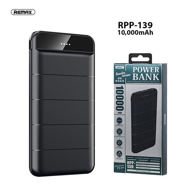 The Remax RPP26 Small Size High Capacity Power Bank Black is a sleek and powerful addition to your mobile accessories arsenal. This compact black power bank is designed for those who demand high-capacity charging without compromising on portability. Remax RPP26 LCD Display Power Bank 10000mAh lithium polymer battery ensures your devices stay charged throughout the day. With 2 input and 2 output ports, this power bank supports high-speed charging, making it your reliable companion for on-the-go power needs.