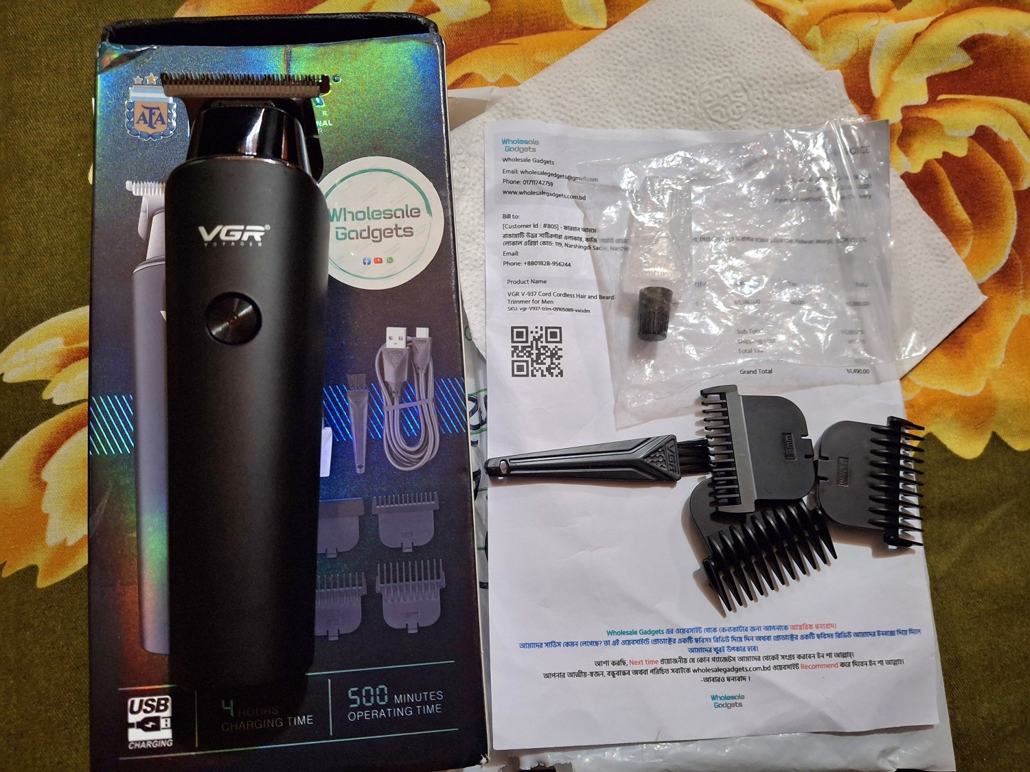 আমি সম্প্রতি Wholesale Gadgets থেকে VGR V-937 Professional Hair Trimmer কিনেছি। আলহামদুলিল্লাহ, প্রোডাক্টটি ব্যবহার করে আমি সত্যিই সন্তুষ্ট। ট্রিমারটি একদম smooth কাজ করে এবং খুব সুন্দরভাবে শেভ হয়। বিশেষভাবে তাদের সার্ভিস ও আচরণ আমাকে খুব মুগ্ধ করেছে। বিক্রেতা ভাই নিজে ফোন করে আমাকে বলেছেন যেন ডেলিভারি বয়ের সামনে সবকিছু ভালোভাবে চেক করি। উনার ব্যবহার ছিল অত্যন্ত নম্র, ভদ্র এবং আন্তরিক, যা আমাকে আরও আশ্বস্ত করেছে। আমি ইউটিউবে তাদের রিভিউ দেখে ওয়েবসাইট থেকে অর্ডার দিয়েছি, এবং এখন ব্যবহার করে বুঝতে পারছি কেন সবাই তাদের প্রশংসা করে। আমি প্রথমবার এখানে অর্ডার দিলেও সত্যিই অরিজিনাল প্রোডাক্ট হাতে পেয়েছি। ✅ সার্বিকভাবে বলতে গেলে, যারা আসল এবং নির্ভরযোগ্য ট্রিমার কিনতে চান, তারা অবশ্যই Wholesale Gadgets থেকে কিনবেন। আলহামদুলিল্লাহ, আমি ১০০% সন্তুষ্ট। আমার কামনা থাকবে যে, আপনাদের সার্ভিস আরও বিশ্বস্ত হয়ে উঠুক এবং আরও বেশি মানুষ এই মানসম্পন্ন অভিজ্ঞতা উপভোগ করতে পারে। নাম: ফারহান ঠিকানা: নরসিংদী সদর