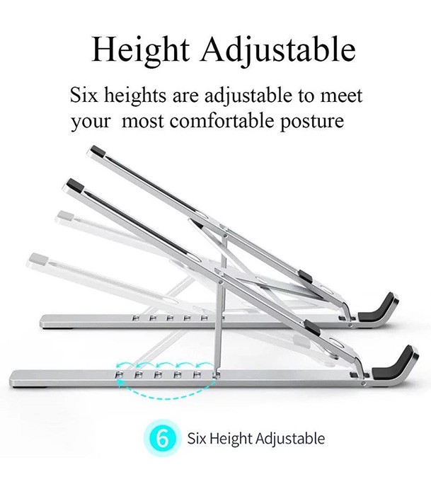 Sturdy& Protective: The laptop computer stand is made of premium 5mm aluminum alloy, which is quite sturdy, supports up to 4kg weight on top, with large rubber pads on the top surface to hold your laptop stable in place and maximum protect your devices from any scratched and sliding
